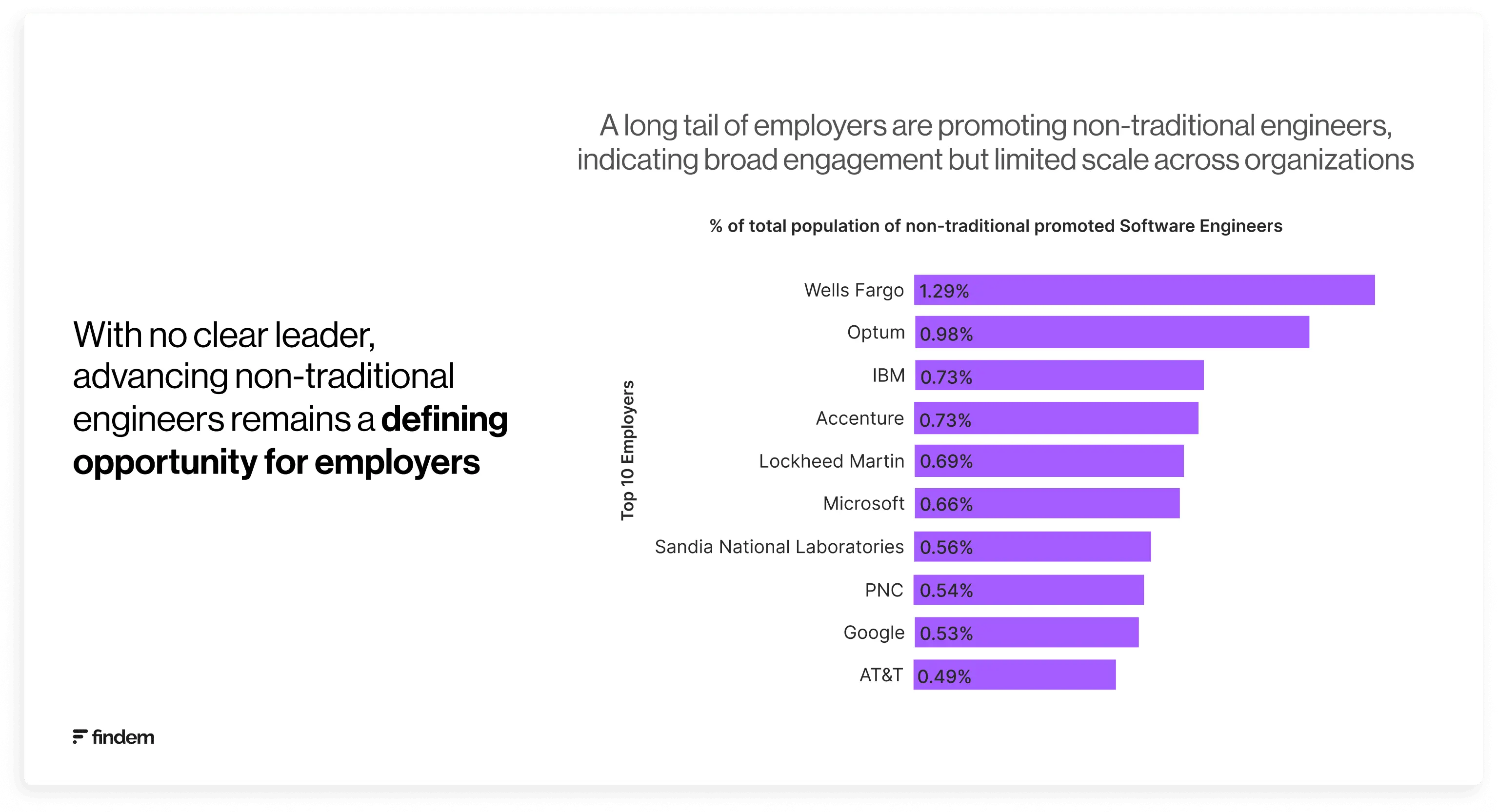 Advancement of non-traditional engineers is widely distributed. No single company accounts for more than 1.3% of promoted engineers from non-engineering backgrounds.