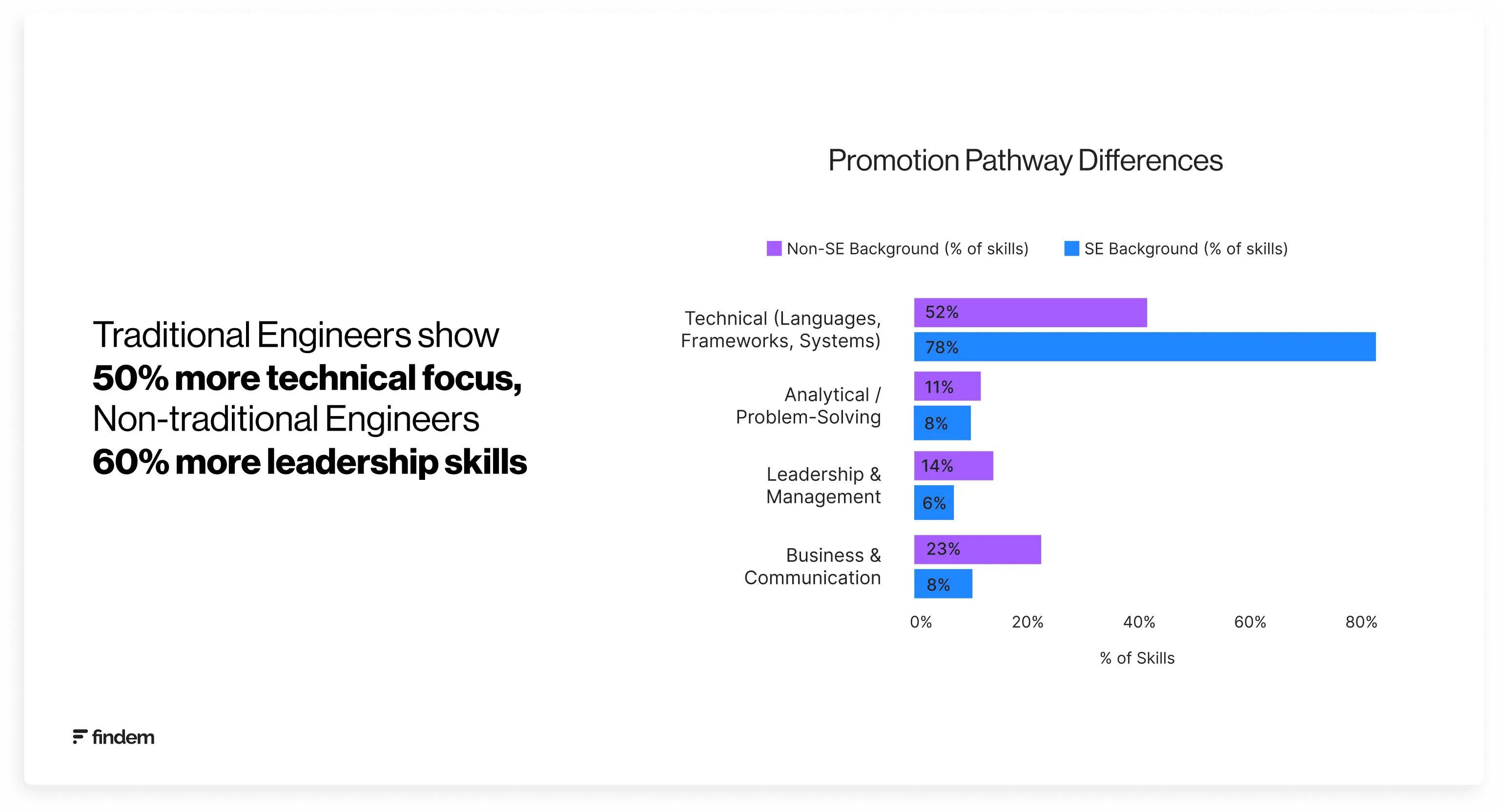 Non-traditional engineers promoted in the past year demonstrated 60% more leadership and cross-functional skills than traditionally trained engineers promoted in the same period.