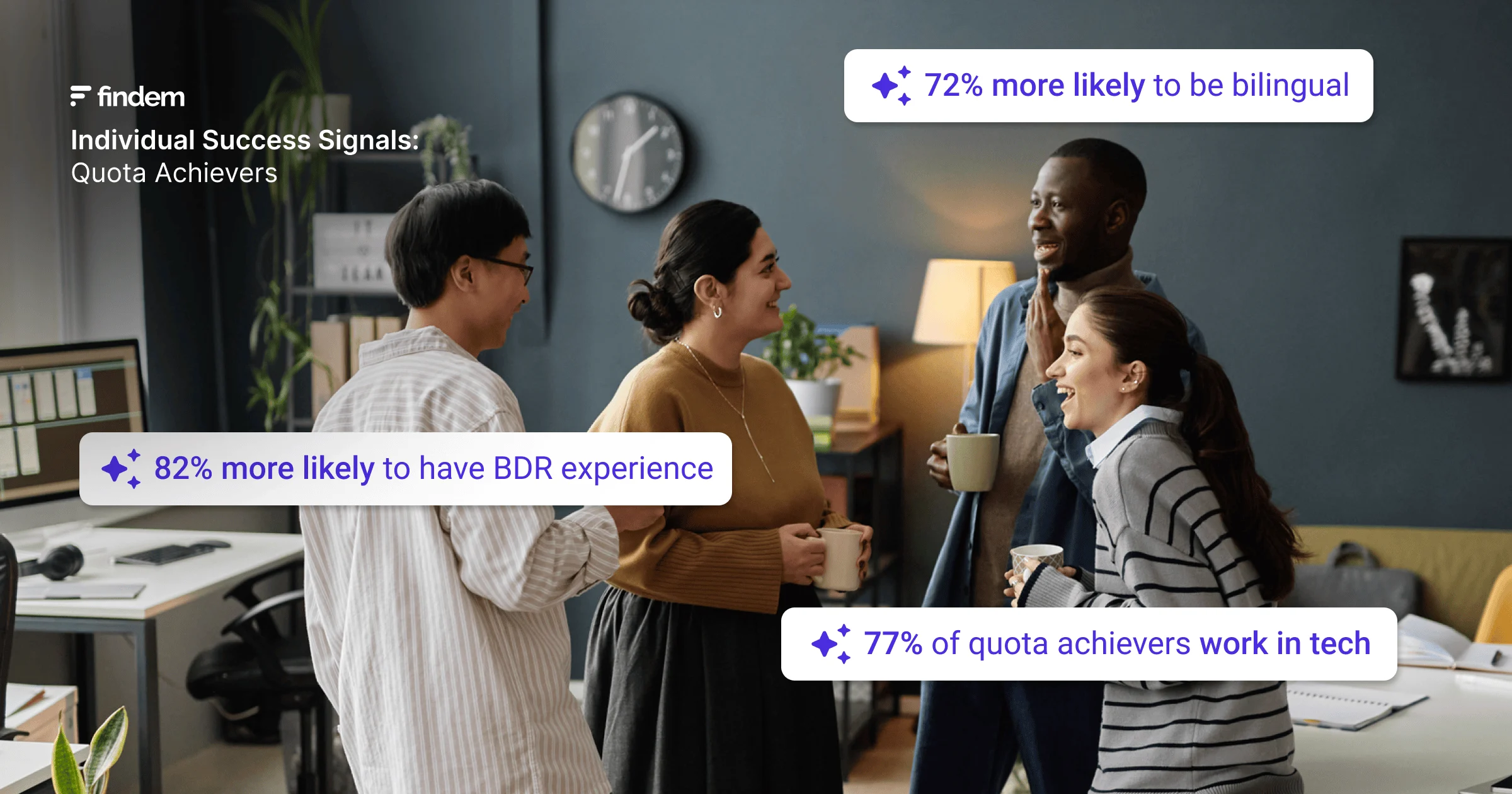 Findem makes these signals visible by structuring messy career data into validated patterns that predict outcomes. For HR leaders, this creates a way to hire, develop, and retain people based on evidence of success, not assumptions. In a market where fewer sellers are hitting quota, understanding and acting on success signals can be the difference between meeting targets and falling short.